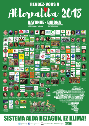 5 ans après la lancement d’Alternatiba, cet événement où 30 000 personnes sont attendues sera un moment fort de mobilisation pour le climat. A la veille de la sortie d’un nouveau rapport du GIEC plus alarmant que jamais, Alternatiba 2018 à Bayonne nous permettra de porter un message fort : alors que les politiques actuelles nous mènent vers le chaos climatique, nous avons les solutions pour maintenir le réchauffement climatique en dessous de 1,5° ! Des milliers de citoyen.ne.s les soutiennent déjà, mais il y a urgence à les faire changer d’échelle !