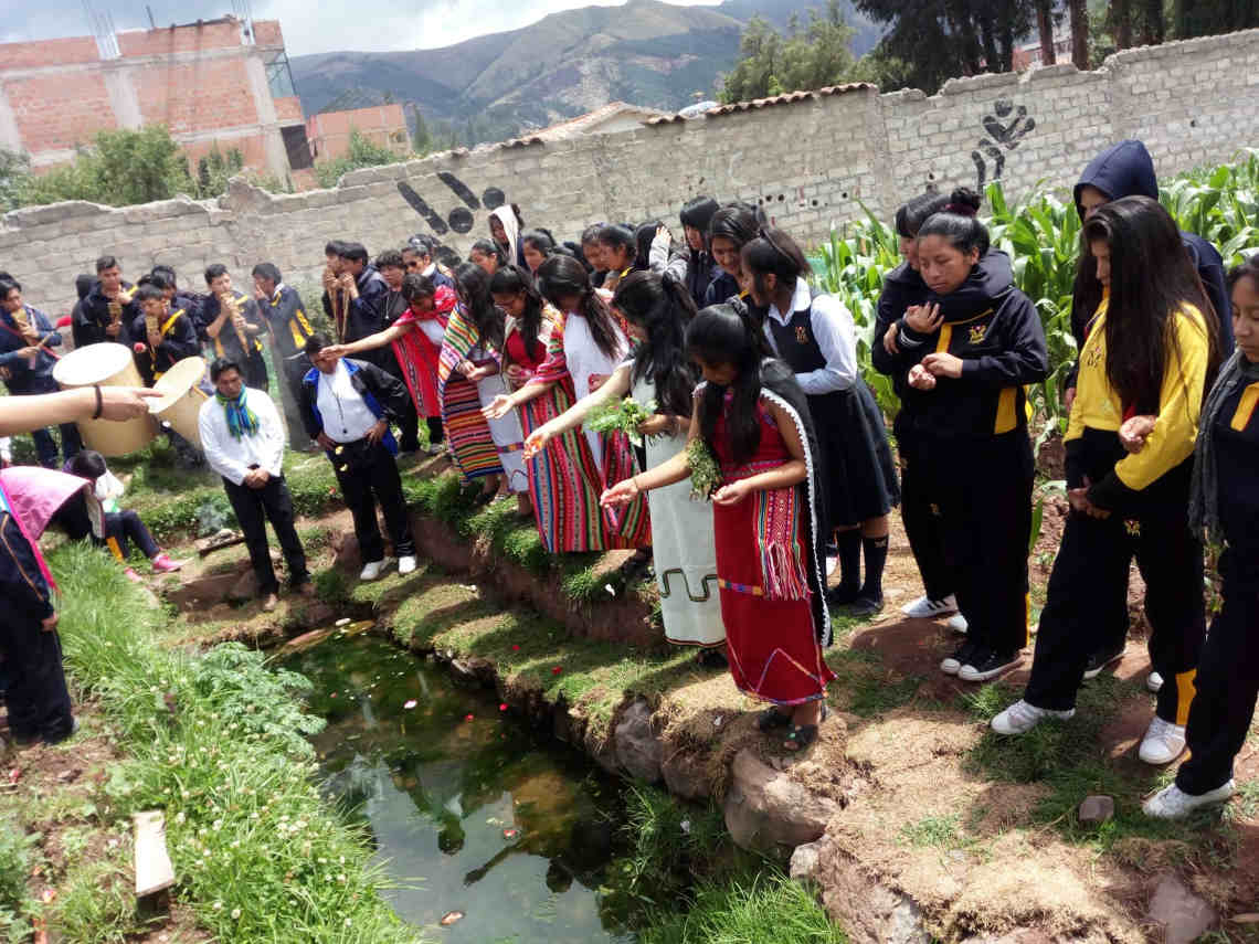 “Hemos determinado tener un espacio aquí en el colegio … es para repensar sobre esta agua natural, cómo cuidar. Los estudiantes ya están limpiando, al principio lo llenaban de piedra, plástico, arrojaban a los sapos, pero ahora los jóvenes cuidan que los chicos no tiren las cosas. Estos chicos que están creciendo en estos espacios, cuando van a salir fuera de este colegio, pensamos que se van a sumar a la cola de los defensores de agua, esa es nuestra utopía, nuestro sueño” (Jaime Araoz, profesor intercultural).
