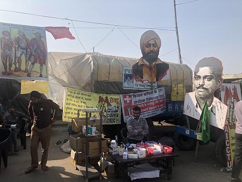 Sanyukt Kisan Morcha (SKM), or the United Farmers Front, the apex coordinating body of the several farmer organisations leading the movement, have built elaborate arrangements at the protest site. They have built temporary thatched and tented residences on the highway, on the tractor-trolleys, set up community kitchens, etc. and resolved that the movement will continue until their demands are met. In an elaborate system, every village regularly sends their family members to stay put at the protest site while they take turn to continue farming and other activities. The names of their villages and cities are marked on the milestones placed in front of the tents with zero-kilometre signages. The protest site has become an extension of their villages and cities. The protest site has also been divided into different zones, named after famous revolutionaries such as Netaji Subhash Nagar, Banda Bahadur Nagar, Sardar Bhagat Singh Nagar, Rajguru Nagar, Sukhdeo Thapar Nagar, Kartar Singh Sarabha Nagar, Chandrashekhar Azad Nagar and others at Singhu border and Guru Nanak Deo Nagar, Chacha Ajit Singh Nagar, Banda Bahadur Singh Nagar and Gulab Kaur Nagar at Tikari border.