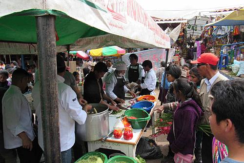 “Hay mucha aceptación cuando la comida es gratis, y definitivamente les parece novedoso cuando ya se enteran que es comida que ha sido rescatada, de hecho muchos otros, sobre todo cuando hemos ido a hacer sensibilizaciones a los mercados, antes de la recolección con los caseros del mercado, algunos han reaccionado no de manera tan positiva, ‘van a dar comida de chanchos a la gente’, ese tipo de cosas también hemos tenido. Después la reacción es muy positiva en general, es un buen espacio para sensibilizar, la gente lo entiende a través del alimento” (Jorge Cereceda, Slow Food Cusco).