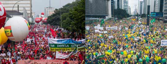 Les Brésiliens sont encore descendus par milliers dans les rues du pays pour protester contre la corruption et les dernières mesures d’austérité proposées par le gouvernement de la présidente Dilma Roussef. Les manifestations du 13 et 15 mars sont cependant très différentes de celles qui ont ébranlées le pays en 2013. A la différence des mouvements d’il y a deux ans, la société brésilienne apparaît de plus en plus divisée.