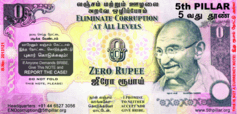 Plus ancienne mais tout aussi intéressante : l’initiative de l’association 5th Pillar. Elle permet d’imprimer un faux billet imitant le billet de 50 roupies, avec l’inscription suivante : « Je promets de ne pas accepter ou donner un pot-de-vin. » L’idée est d’inciter citoyens et fonctionnaires à reconnaître l’illégalité de cette situation. L’association s’occupe aussi de prendre en compte des cas de corruption avérés en les dénonçant. Depuis 2011, d’autres initiatives sont également venues se greffer à celles-ci.