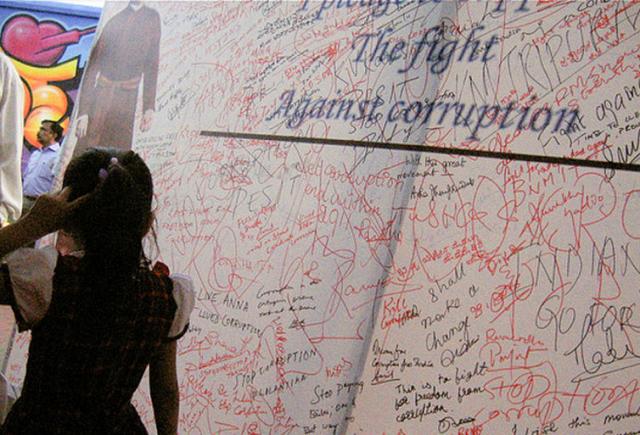 C’est dans ce contexte d’insatisfaction grandissante que, début avril 2011, Anna Hazare, un activiste du mouvement India Against Corruption, décide d’entamer une grève de la faim pour pousser le gouvernement à adopter le projet de loi anticorruption (Jan Lokpal Bill). Il prévoit la création d’une institution indépendante du pouvoir en charge de juger les cas de corruption liés au gouvernement.