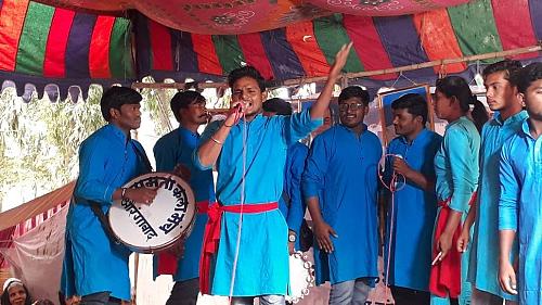 Dalit [2] (belonging to the oppressed castes) jalsa performers like Kardak contributed to caste and class consciousness—from singing about Dr. Ambedkar’s work and life to the class struggle in industrialised India. In his article, Maitreya, an anti-caste poet, writes that the jalsa was a form for critiquing Brahmanical practices and cultural domination. By the 1990s, this took the form of what was called the Ambedkari jalsa, an adaptation of the declining former Satyashodhak jalsa, and helped propel cultural resistance among the masses. Kardak’s legacy of the Ambedkari shahiri-geet (poetry-songs) was carried forward in Maharashtra by balladeers like Annabhau Sathe, Amar Sheikh, Vilas Ghogre, Shantanu Kamble, Sambhaji Bhagat and others who inspire anti-caste cultural groups across Maharashtra today. Among these groups are Yalgaar Sanskrutik Manch (henceforth referred to as Yalgaar) and the Samata Kala Manch (SKM).