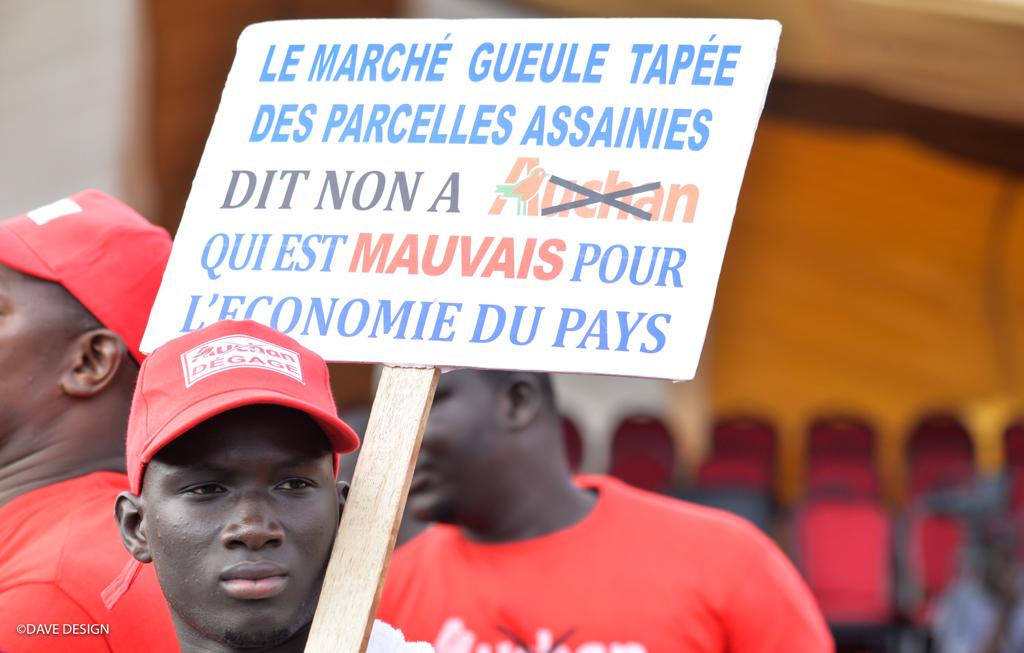 Le slogan « Auchan dégage ! » est repris en réalité d’un autre groupe de vendeurs qui, quelques semaines plus tôt, a lancé une campagne au marché Castor, dans un autre quartier de Dakar. Ils ne pouvaient plus supporter la façon dont Auchan détournait leurs clients, en vendant certains produits alimentaires à des prix impossiblement bas.